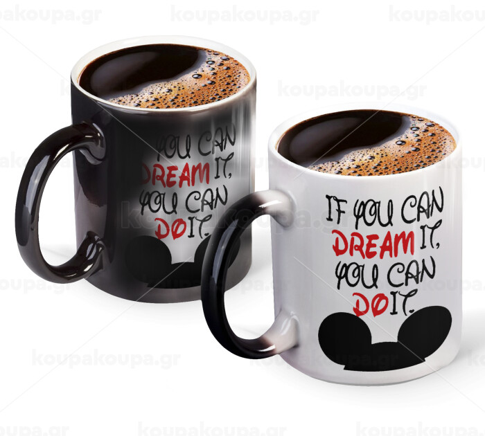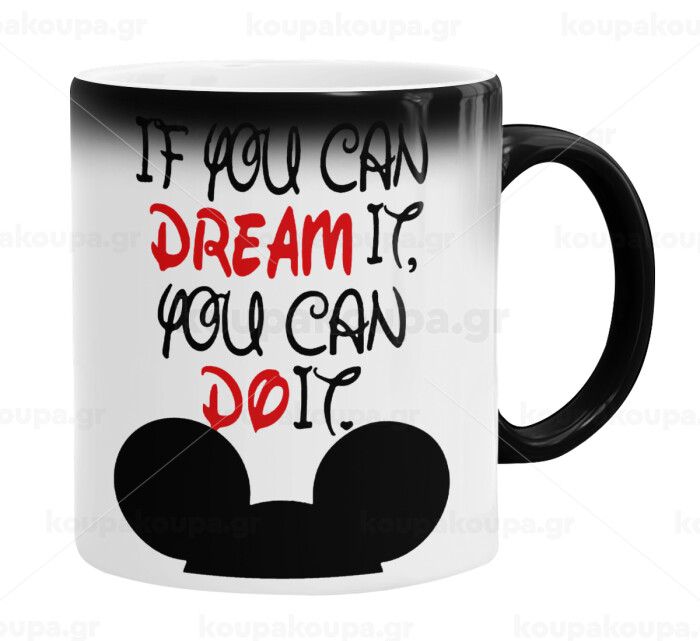 If you can dream it, you can do it, Color changing magic Mug, ceramic, 330ml when adding hot liquid inside, the black colour desappears (1 pcs)