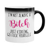I'm not always a bitch, just kidding go f..k yourself , Color changing magic Mug, ceramic, 330ml when adding hot liquid inside, the black colour desappears (1 pcs)