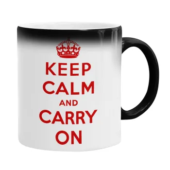 KEEP CALM  and carry on, Color changing magic Mug, ceramic, 330ml when adding hot liquid inside, the black colour desappears (1 pcs)