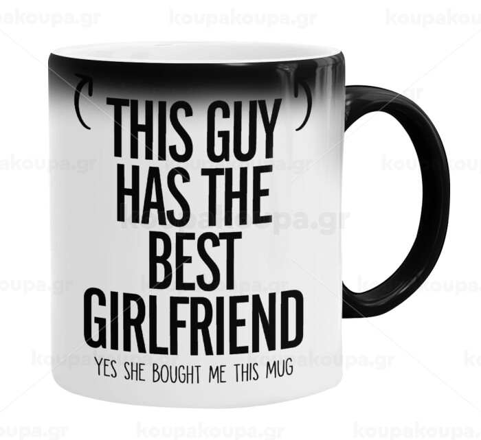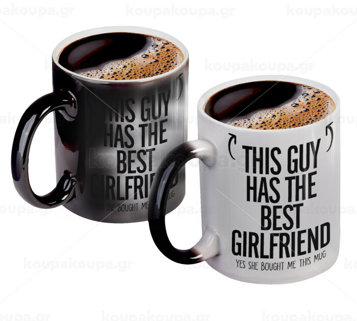 This guy has the best Girlfriend, Color changing magic Mug, ceramic, 330ml when adding hot liquid inside, the black colour desappears (1 pcs)