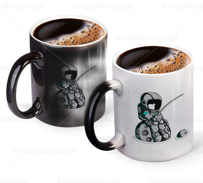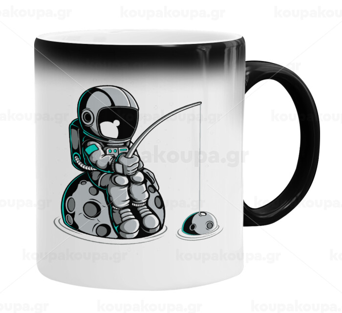 Little astronaut fishing, Color changing magic Mug, ceramic, 330ml when adding hot liquid inside, the black colour desappears (1 pcs)