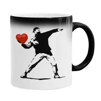 Banksy (The heart thrower), Color changing magic Mug, ceramic, 330ml when adding hot liquid inside, the black colour desappears (1 pcs)