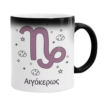 Ζώδια Αιγόκερως, Color changing magic Mug, ceramic, 330ml when adding hot liquid inside, the black colour desappears (1 pcs)