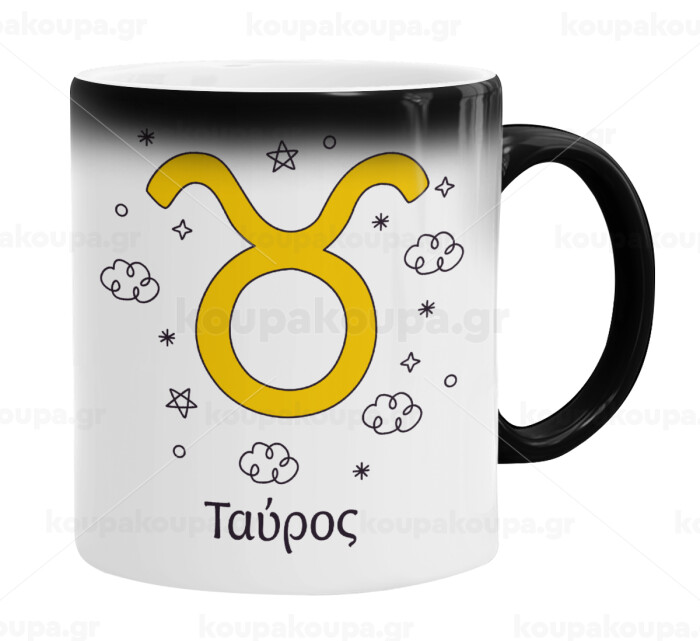 Ζώδια Ταύρος, Color changing magic Mug, ceramic, 330ml when adding hot liquid inside, the black colour desappears (1 pcs)