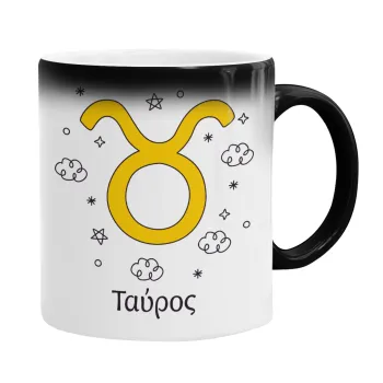 Ζώδια Ταύρος, Color changing magic Mug, ceramic, 330ml when adding hot liquid inside, the black colour desappears (1 pcs)