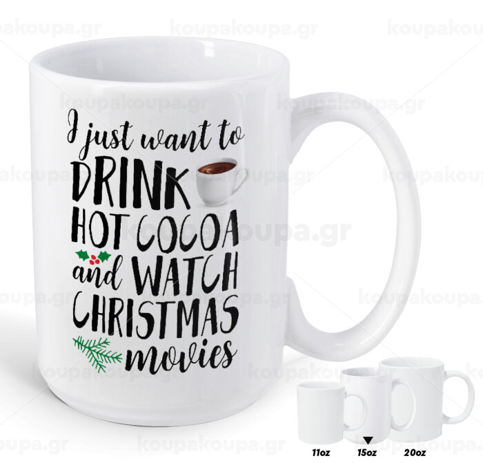 I just want to drink hot cocoa and watch christmas movies, Κούπα Mega, κεραμική, 450ml