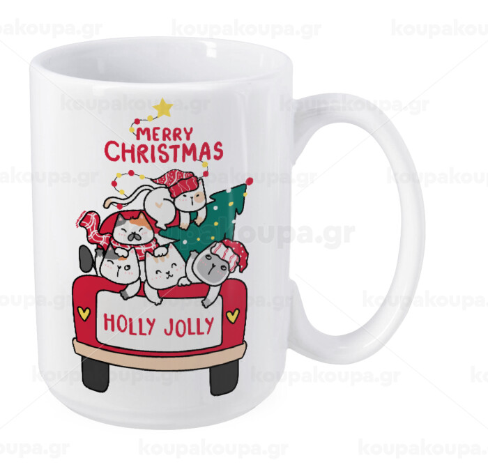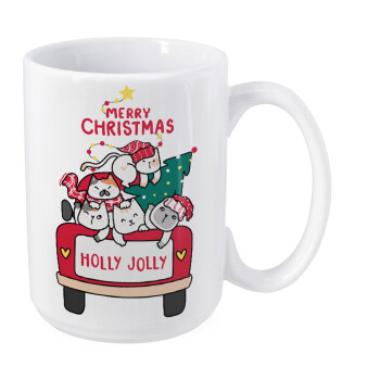 Merry Christmas cats in car, Κούπα Mega, κεραμική, 450ml