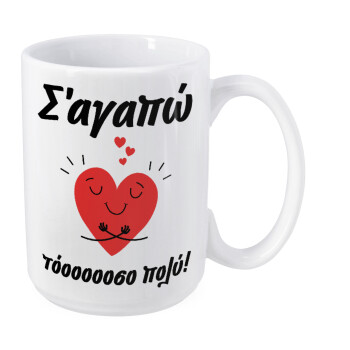 Σ΄αγαπώ τόοοοσο πολύ καρδιά, Κούπα Mega, κεραμική, 450ml