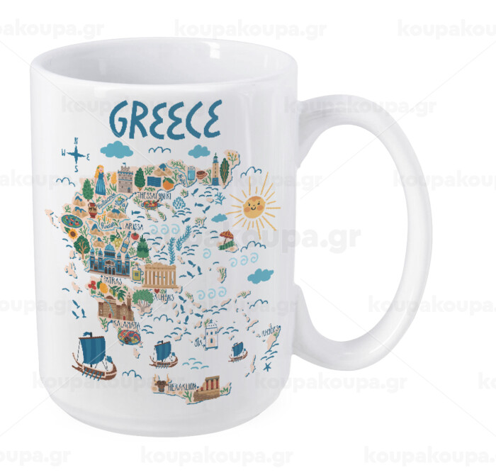 Greek map, Κούπα Mega, κεραμική, 450ml