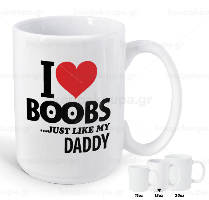 I Love boobs ...just like my daddy, Κούπα Mega, κεραμική, 450ml