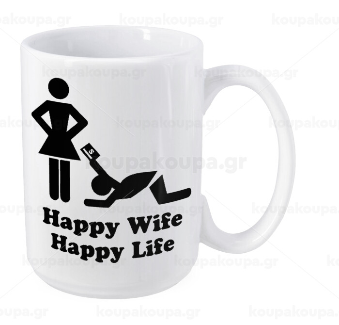 Happy Wife, Happy Life, Κούπα Mega, κεραμική, 450ml