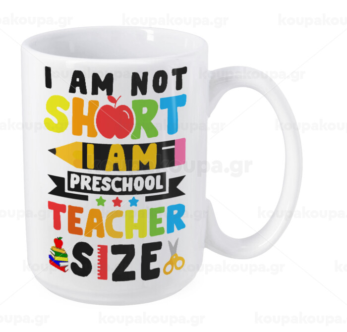 I Am Not Short I Am Preschool Teacher Size, Κούπα Mega, κεραμική, 450ml