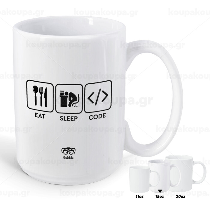 Eat Sleep Code, Κούπα Mega, κεραμική, 450ml