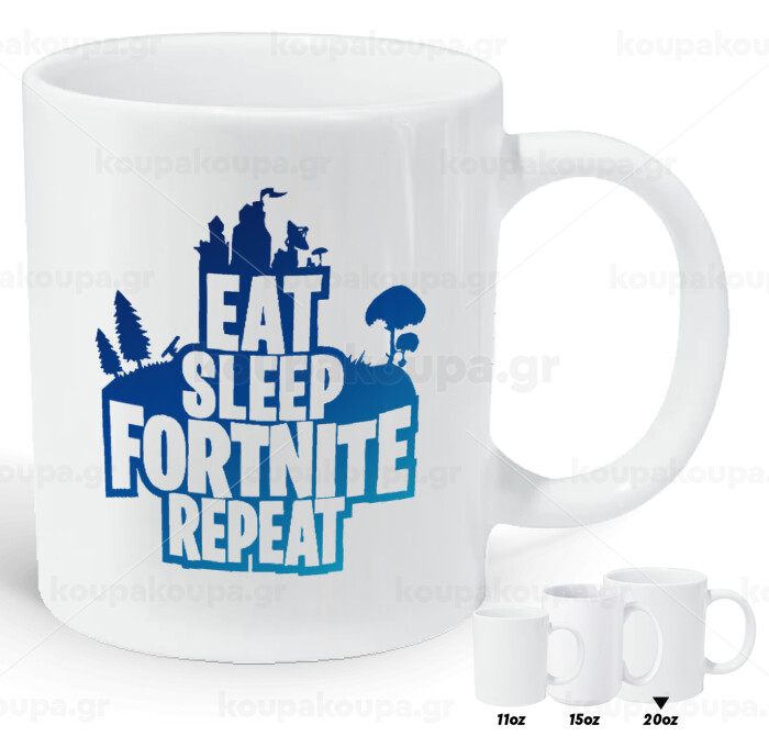 Eat Sleep Fortnite Repeat, Κούπα Giga, κεραμική, 590ml