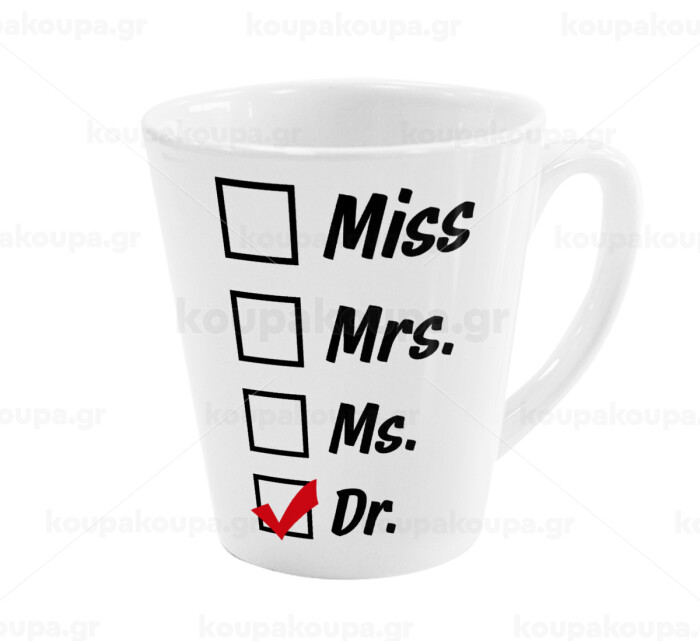 Miss, Mrs, Ms, DR, Κούπα κωνική Latte Λευκή, κεραμική, 300ml