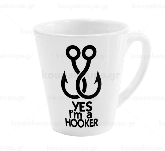 Yes i am Hooker, Κούπα κωνική Latte Λευκή, κεραμική, 300ml
