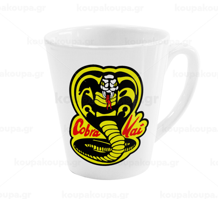 Cobra Kai Yellow, Κούπα κωνική Latte Λευκή, κεραμική, 300ml