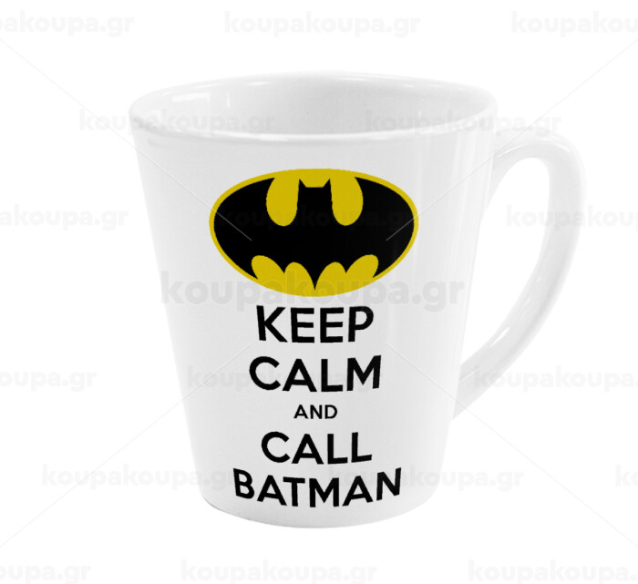 KEEP CALM & Call BATMAN, Κούπα κωνική Latte Λευκή, κεραμική, 300ml