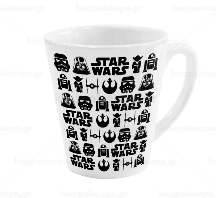 Star Wars Pattern, Κούπα κωνική Latte Λευκή, κεραμική, 300ml