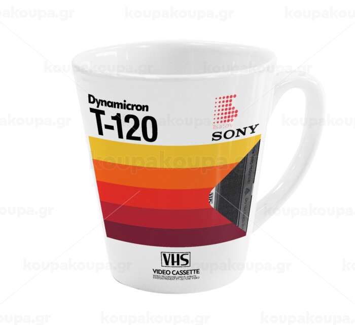 VHS sony dynamicron T-120, Κούπα κωνική Latte Λευκή, κεραμική, 300ml