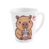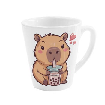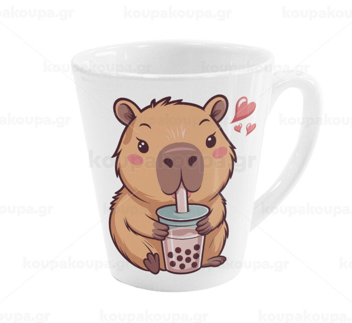 Capybara Bubble Tea, Κούπα κωνική Latte Λευκή, κεραμική, 300ml