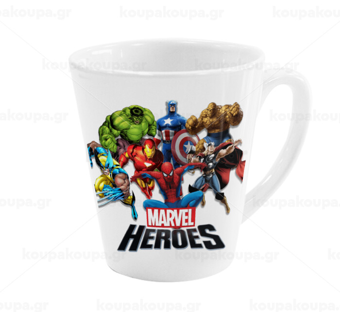 MARVEL heroes, Κούπα κωνική Latte Λευκή, κεραμική, 300ml