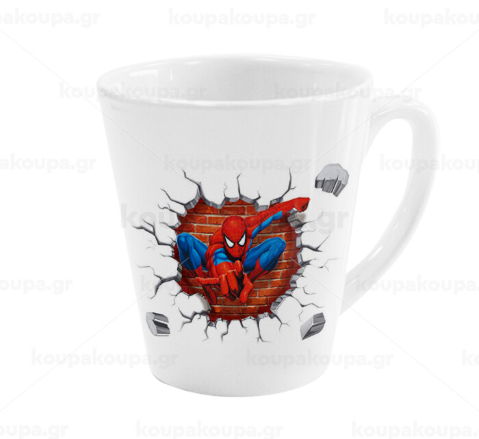 Spiderman wall, Κούπα κωνική Latte Λευκή, κεραμική, 300ml