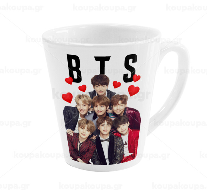 BTS hearts, Κούπα κωνική Latte Λευκή, κεραμική, 300ml