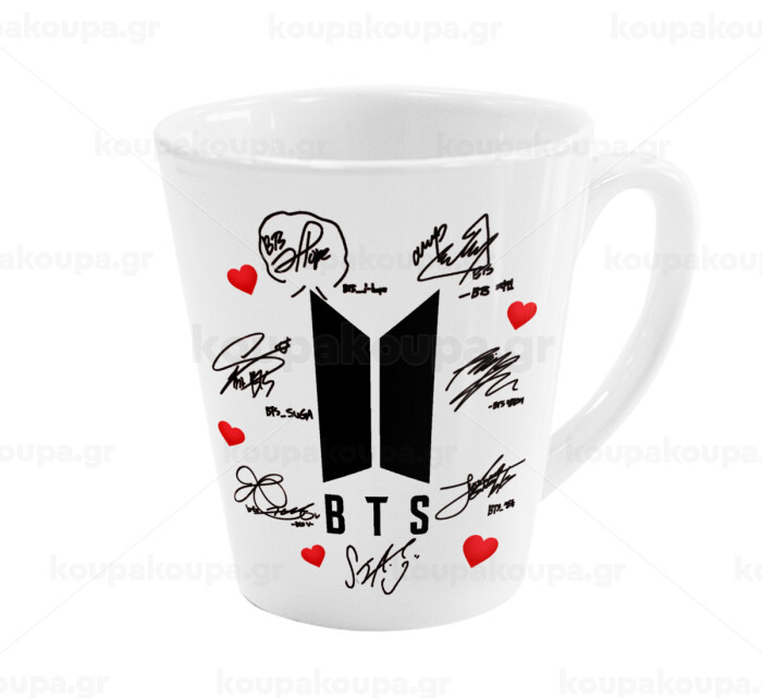 BTS signs, Κούπα κωνική Latte Λευκή, κεραμική, 300ml