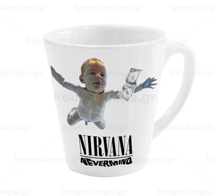Nirvana nevermind, Κούπα κωνική Latte Λευκή, κεραμική, 300ml