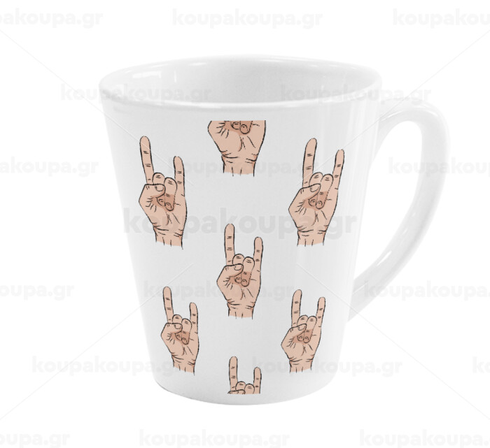 Rock hands, Κούπα κωνική Latte Λευκή, κεραμική, 300ml
