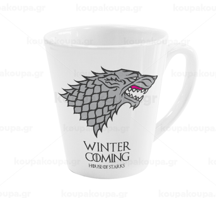 GOT House of Starks, winter coming, Κούπα κωνική Latte Λευκή, κεραμική, 300ml