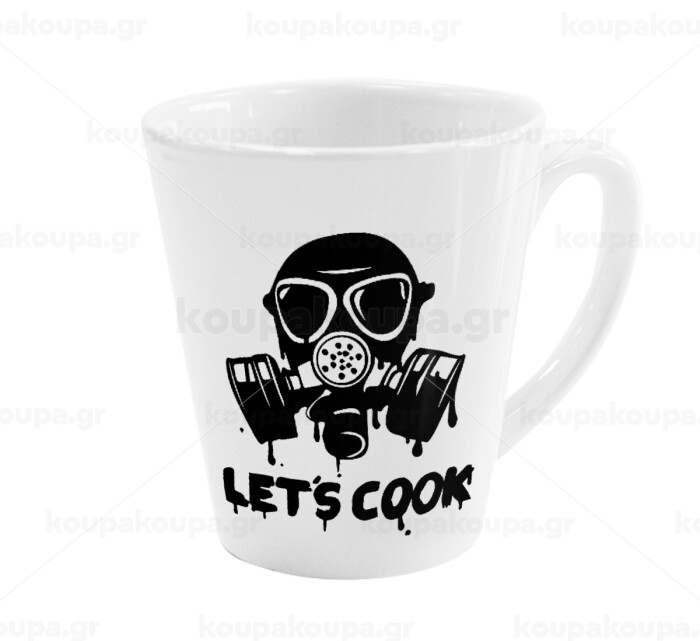 Let's cook mask, Κούπα κωνική Latte Λευκή, κεραμική, 300ml