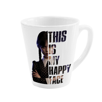 Wednesday, This is my happy face, Κούπα κωνική Latte Λευκή, κεραμική, 300ml