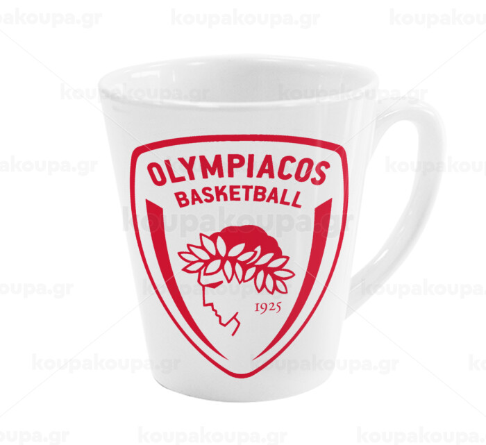 Olympiacos B.C., Κούπα κωνική Latte Λευκή, κεραμική, 300ml