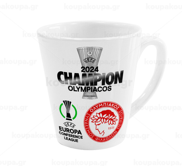 Olympiacos UEFA Europa Conference League Champion 2024, Κούπα κωνική Latte Λευκή, κεραμική, 300ml