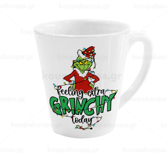 Grinch Feeling Extra Grinchy Today, Κούπα κωνική Latte Λευκή, κεραμική, 300ml