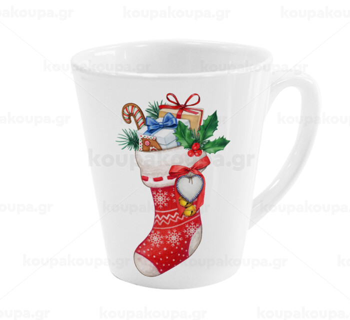 Xmas boot, Κούπα κωνική Latte Λευκή, κεραμική, 300ml