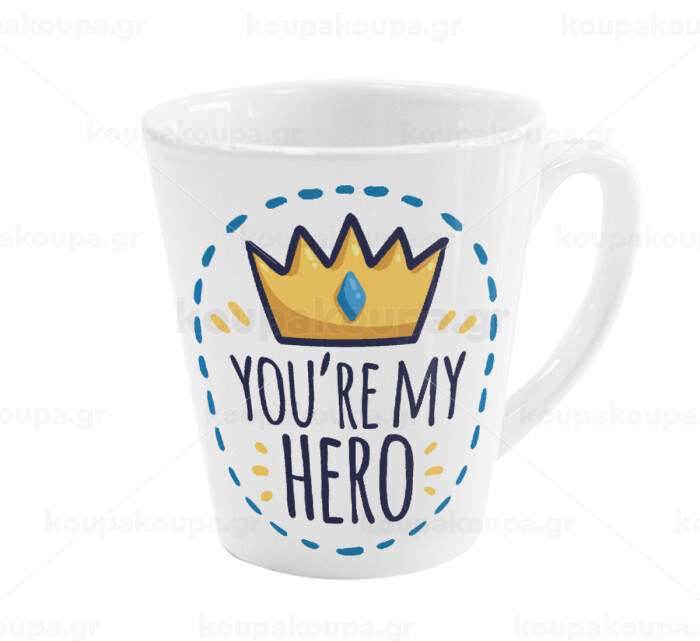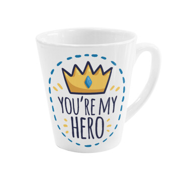 Dad, you are my hero!, Κούπα κωνική Latte Λευκή, κεραμική, 300ml