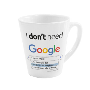 I don't need Google my dad..., Κούπα κωνική Latte Λευκή, κεραμική, 300ml