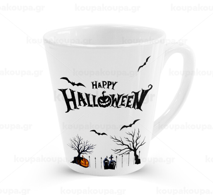 Happy Halloween cemetery, Κούπα κωνική Latte Λευκή, κεραμική, 300ml
