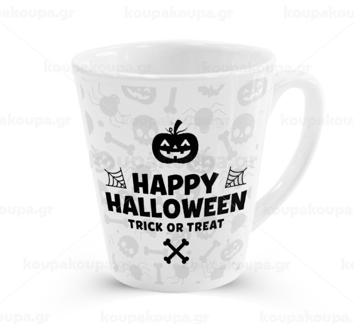 Happy Halloween pumpkin, Κούπα κωνική Latte Λευκή, κεραμική, 300ml