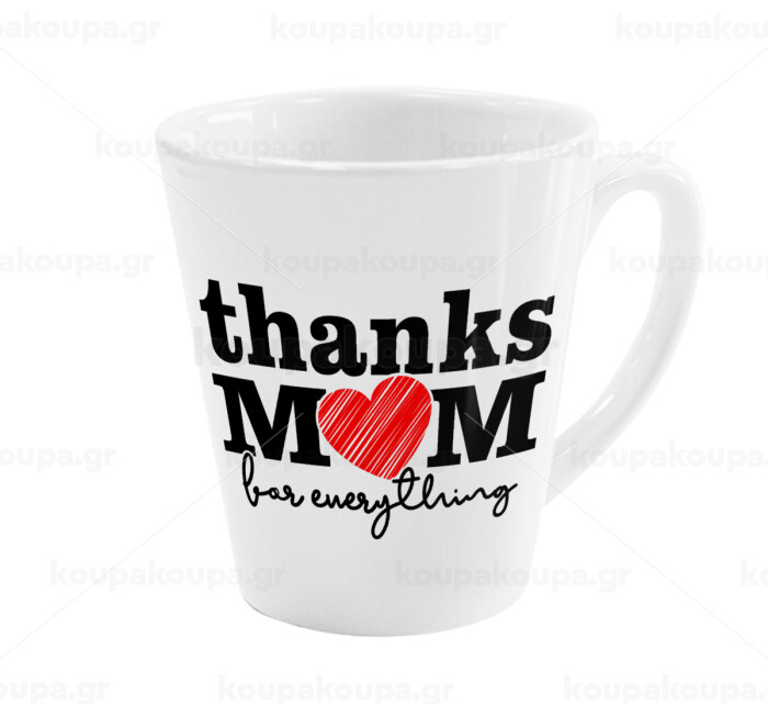 Thanks mom for everything, Κούπα κωνική Latte Λευκή, κεραμική, 300ml