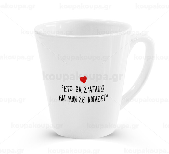 ΕΓΩ ΘΑ Σ’ΑΓΑΠΩ ΚΑΙ ΜΗΝ ΣΕ ΝΟΙΑΖΕΙ..., Κούπα κωνική Latte Λευκή, κεραμική, 300ml