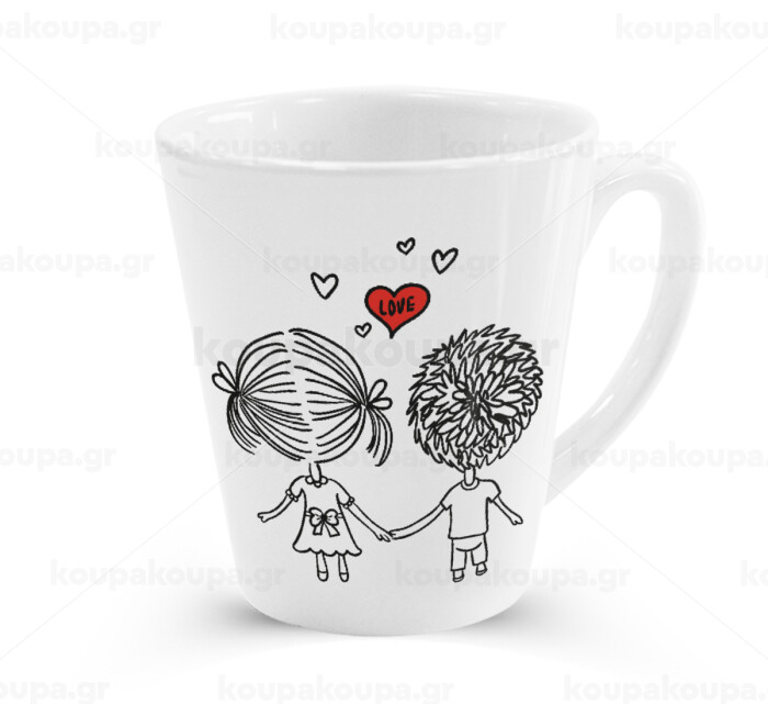 Hold my hand for ever, Κούπα κωνική Latte Λευκή, κεραμική, 300ml