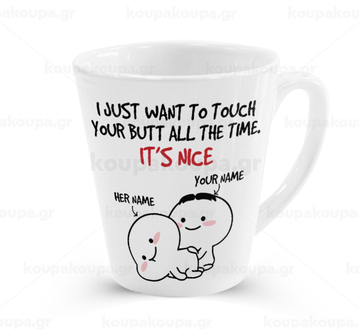I Just Want To Touch Your Butt All The Time, Κούπα κωνική Latte Λευκή, κεραμική, 300ml
