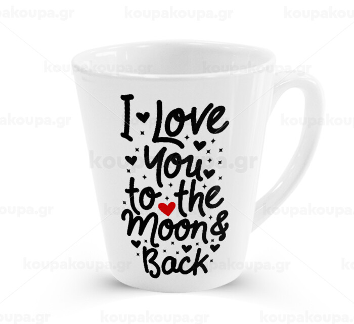 I love you to the moon and back with hearts, Κούπα κωνική Latte Λευκή, κεραμική, 300ml