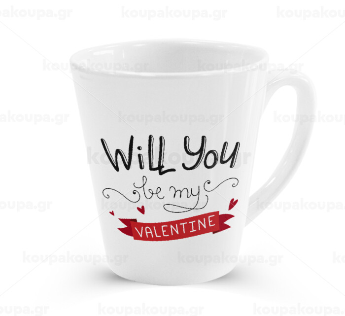Will you be my Valentine???, Κούπα κωνική Latte Λευκή, κεραμική, 300ml