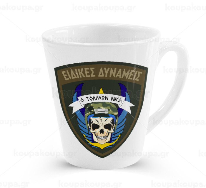Hellas special force's, Κούπα κωνική Latte Λευκή, κεραμική, 300ml