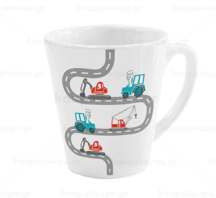 excavator along road, Κούπα κωνική Latte Λευκή, κεραμική, 300ml